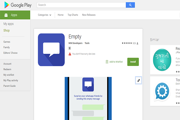 إن أحببت أن تخدع صديقك و تبهره أنت كذلك بإرسالك له رسالة فارغة على الواتس أب كل ما عليك أن تقوم به هو تحميل تطبيق " Empty " الذي هو تطبيق مجاني ستجد رابط تحميله أسفل التدوينة ، غير ذلك فالتطبيق سهل الإستعمال كل ما عليك القيام به الولوج إلى التطبيق ثم ستجد زر Send قم بالنقر عليه ليتم توجيهك إلى تطبيق واتس أب بعد ذلك.
